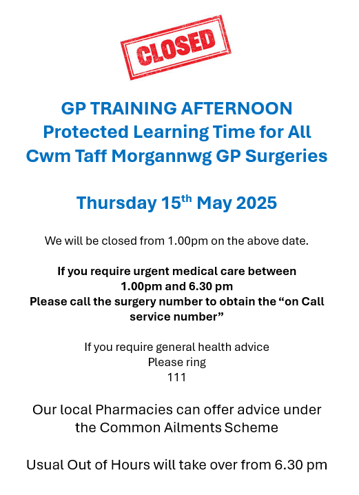 junior doctors will be striking in Wales on 25th - 29th March 2024. Our surgery will remain open during this time. Unfortunately, the strike will impact our service availability and you are likely to find the service busier than normal during this time. We recommend trying the following services, if you are having difficulty in accessing our care.